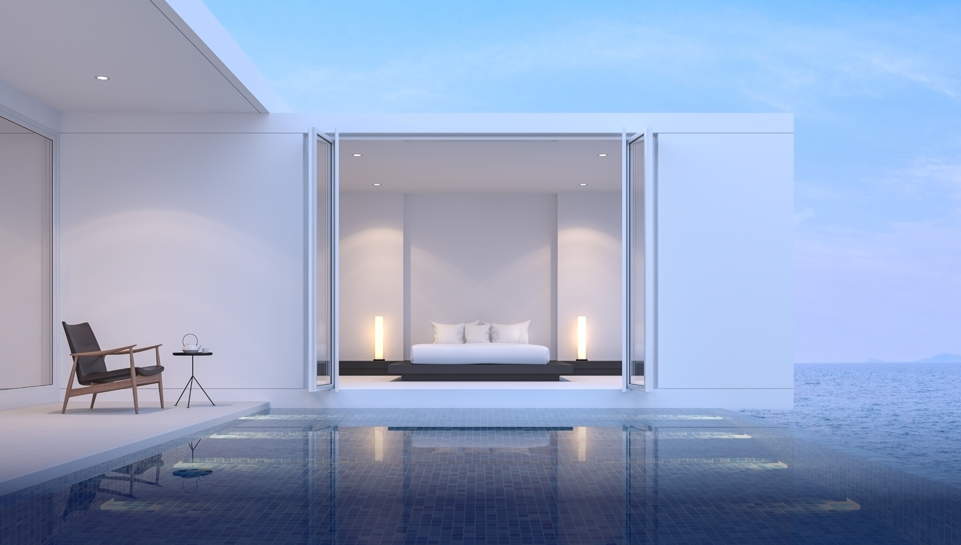Die Aluminium Faltschiebetür ist sehr modern.